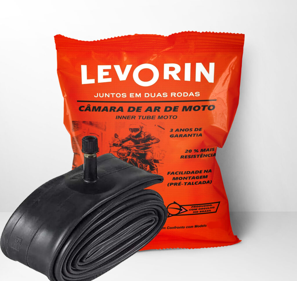 As câmaras Levorin são produzidas com um blending de elastômetros naturais e sintéticos que garantem mais impermeabilidade (resistência à permeabilidade do ar de inflação), resistência mecânica (furos, rasgos, etc) e reparabilidade (possibilidade de efetuar consertos de furos).
