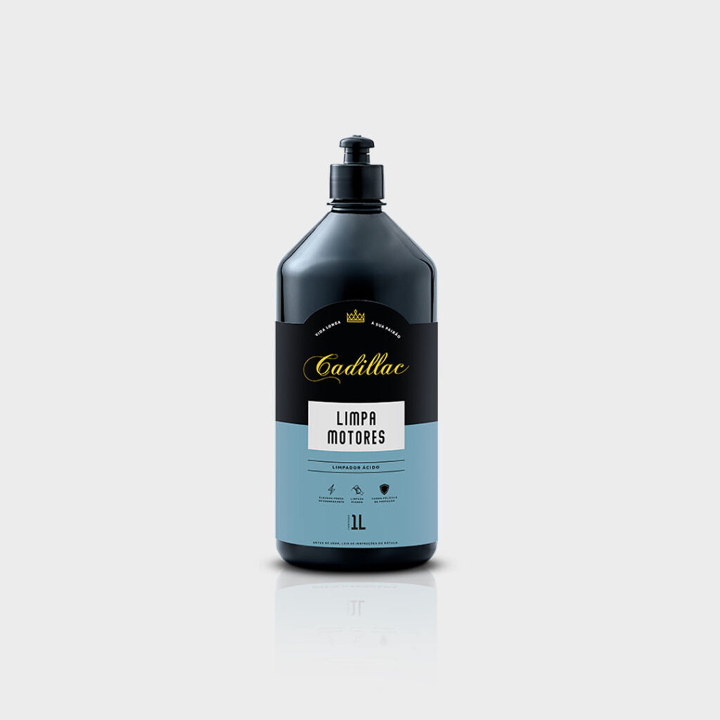Para a limpeza mais pesada, use o LIMPA MOTORES Cadillac®. Esta solução especial e balanceada possui um elevado poder desengraxante, removendo com altíssima eficiência toda a sujidade, como óleos, graxas e fuligem, da superfície do motor.