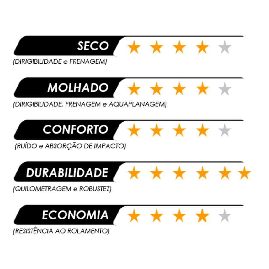 Durabilidade superior graças ao nosso novo composto de sílica, aliado a um desenho eficiente da banda de rodagem.