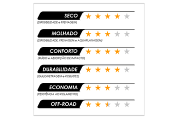 Banda de rodagem: formulada especialmente para melhor a tração em todos os terrenos, proporcionando resposta precisa ao volante e melhor distância de frenagem
